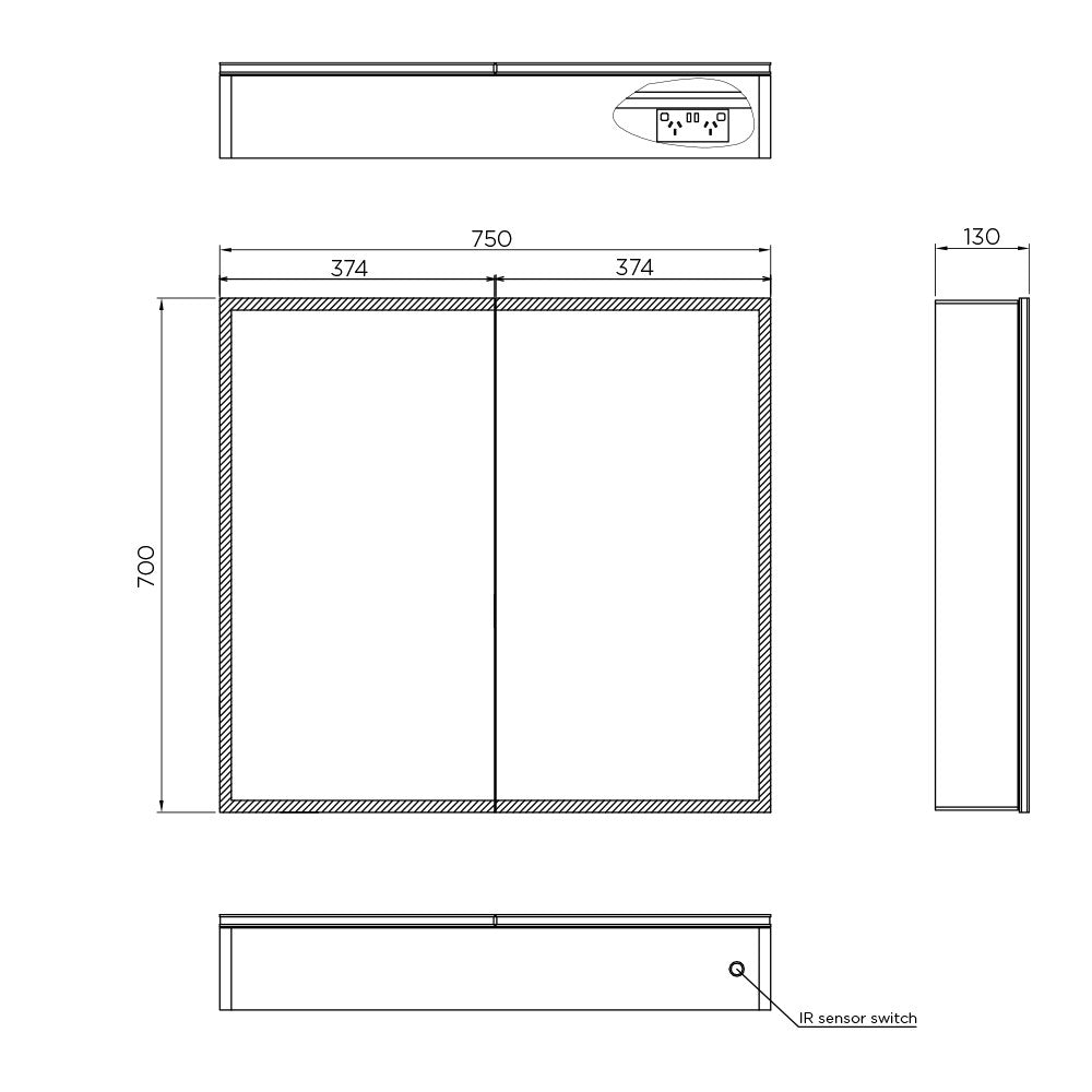 The edge lighting is lit using the latest LED technology for long life, low electricity usage and an even spread of light, unlike older fluorescent lit mirrors. The lights and demister are operated via the infrared sensor switch on the underside of the cabinet.