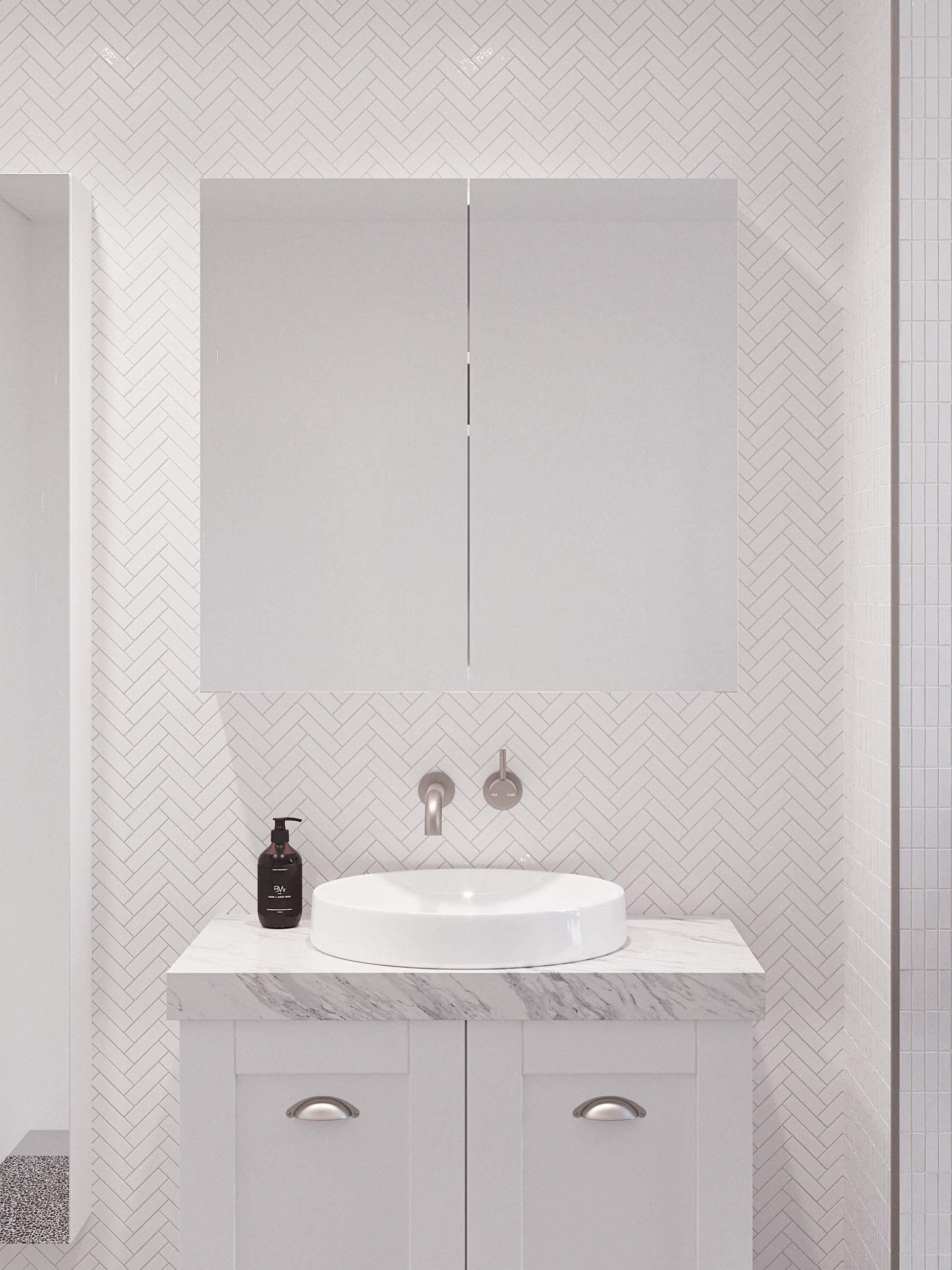 - Upgrade to Platinum option with Luxe Graphite interior and glass internal shelves to match Platinum vanities