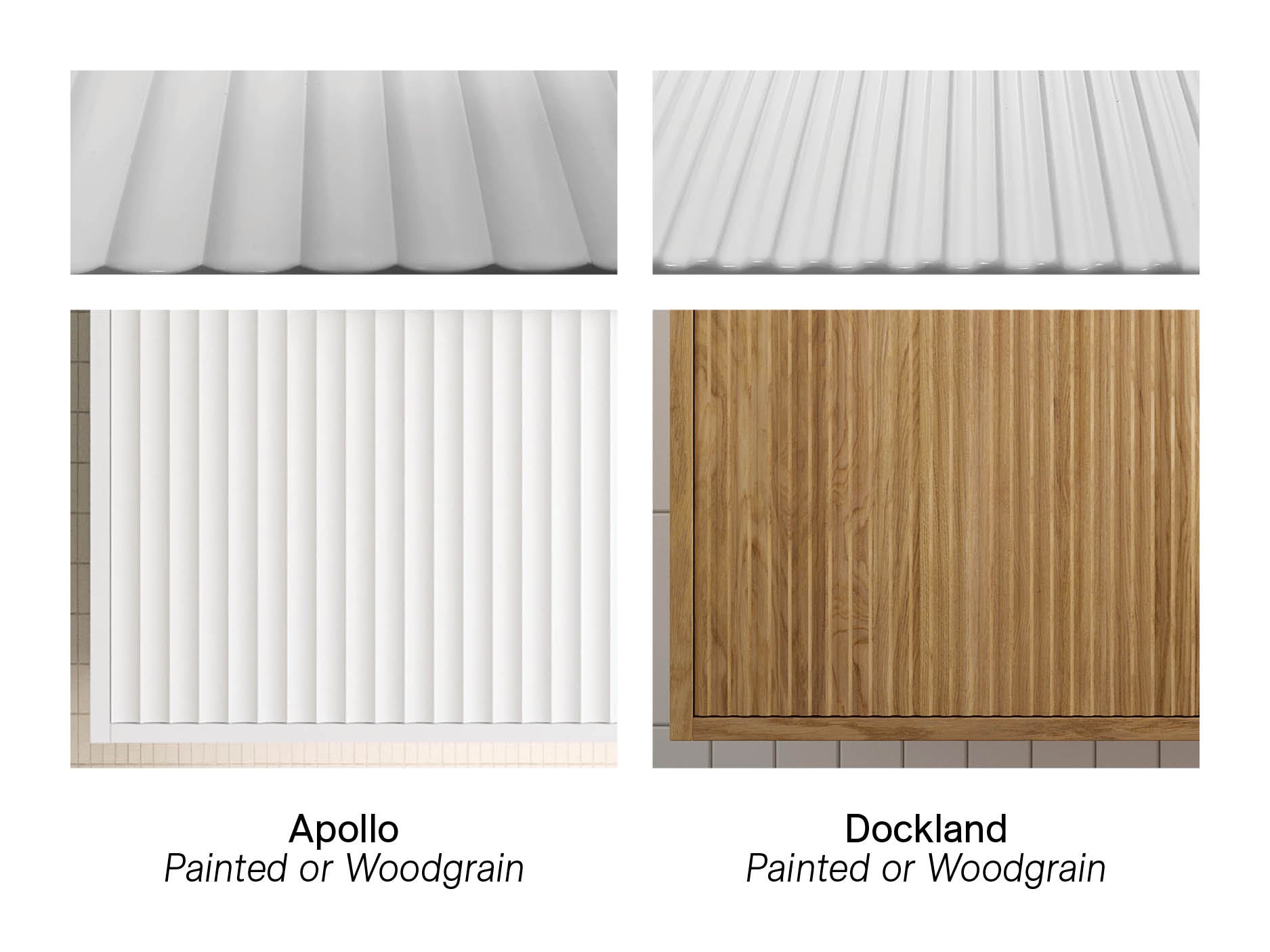 - Painted, Coastal Oak, Prime Oak, Tassie Oak, Florentine Walnut, or Bottega Oak