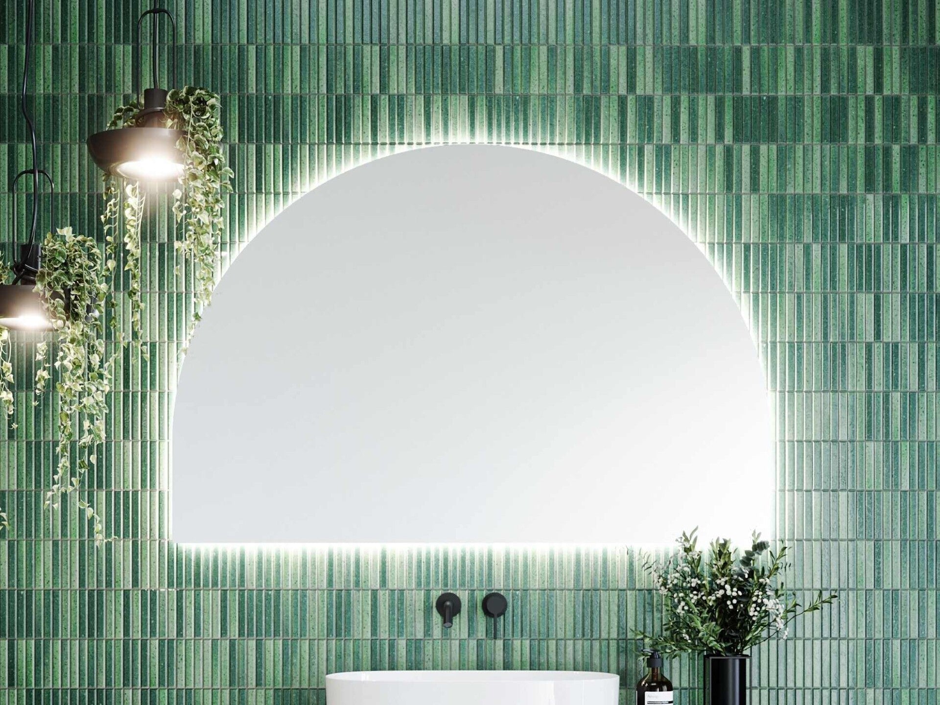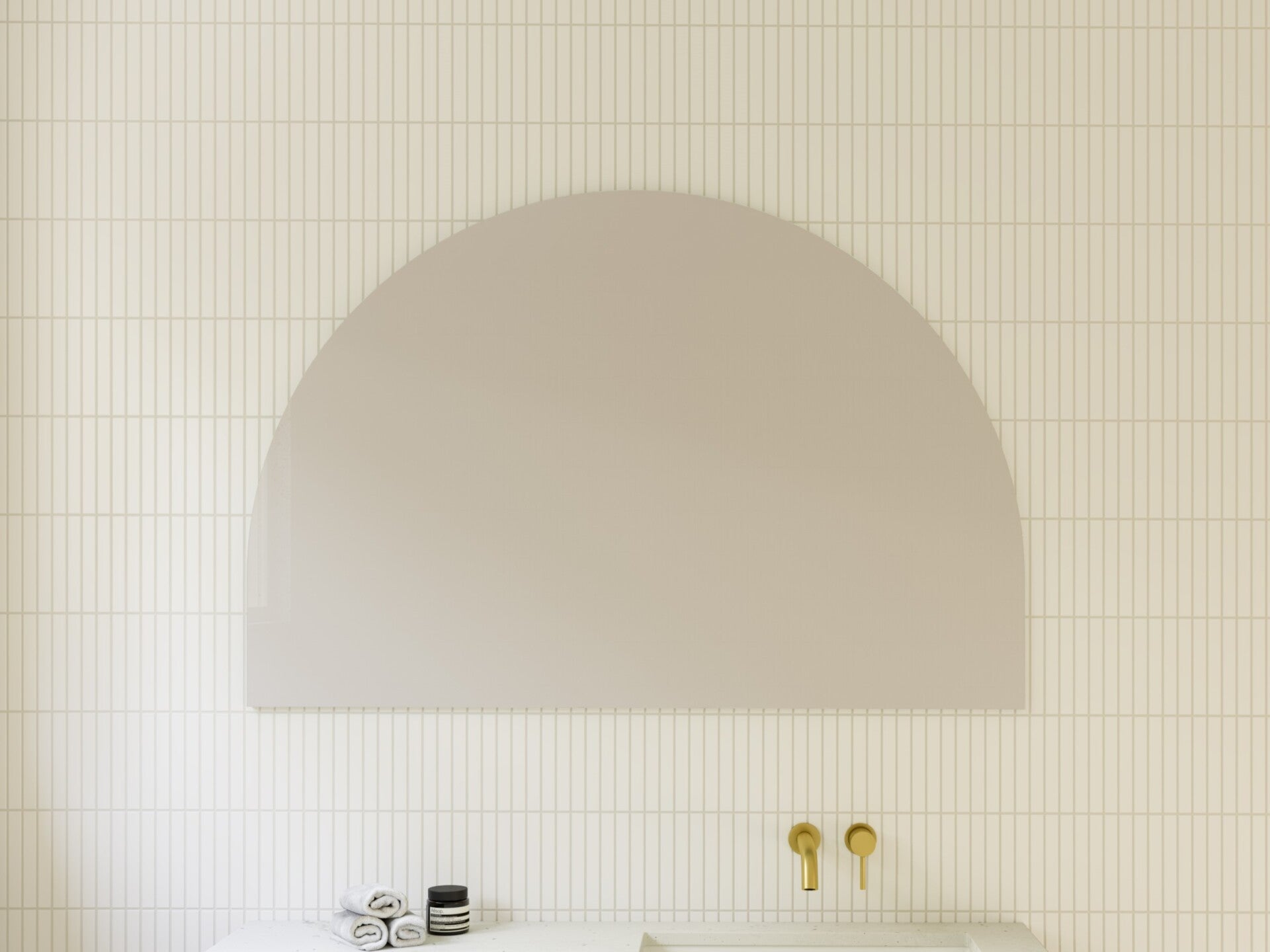 Step into modern elegance with the captivating half-moon design of the Melody mirror. Embracing contemporary trends, the mirrors gentle curve and generous surface make it a perfect addition to elevate the aesthetic of your bathroom.