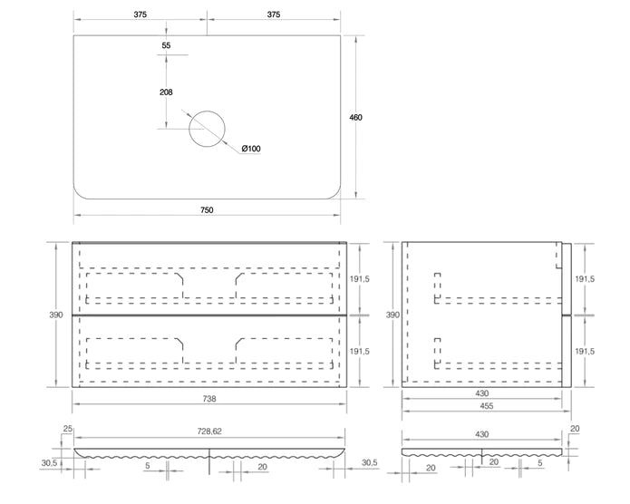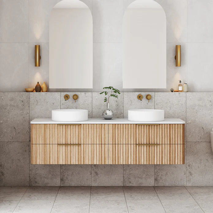 Cassa Design Gravity Natural Oak Curved Wall Hung Vanity