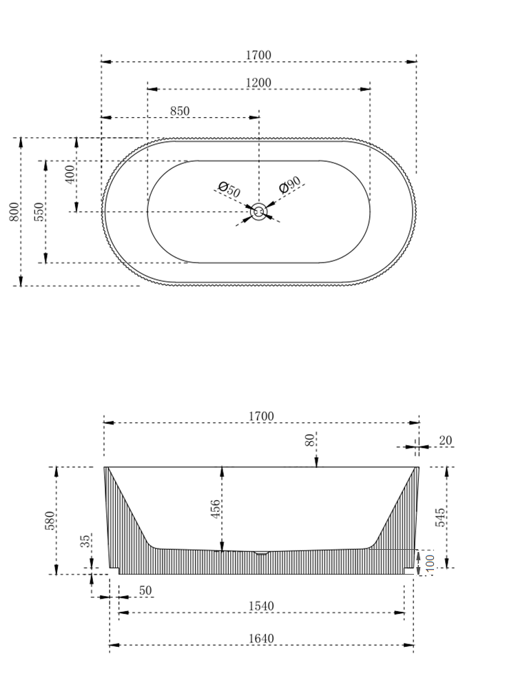 - Freestanding Back to Wall Bath with V-Groove Line Surround