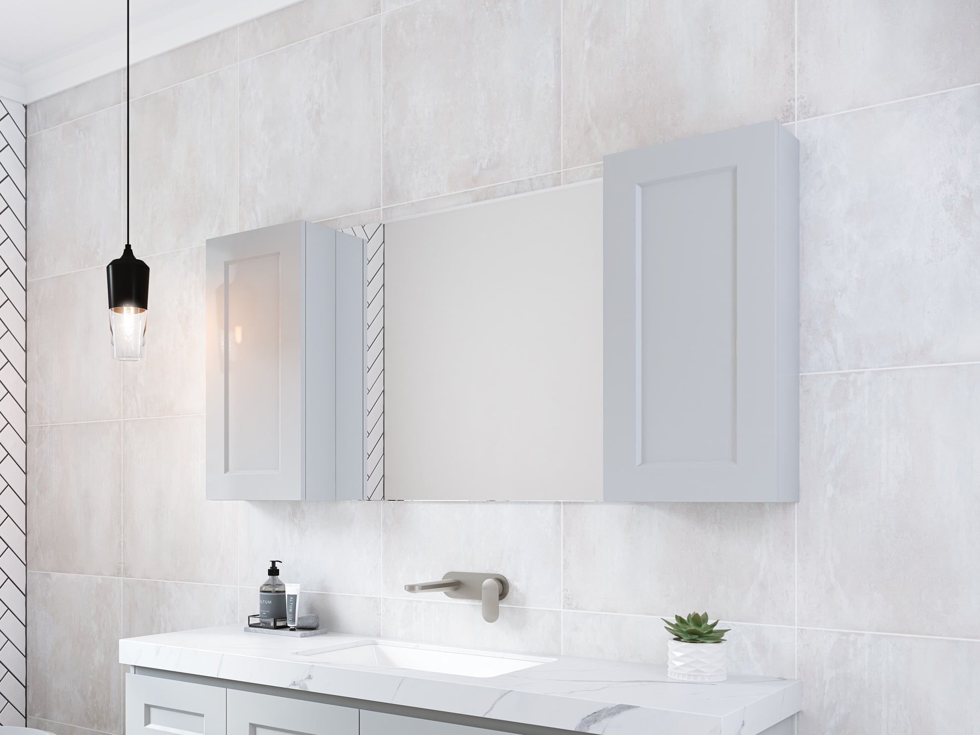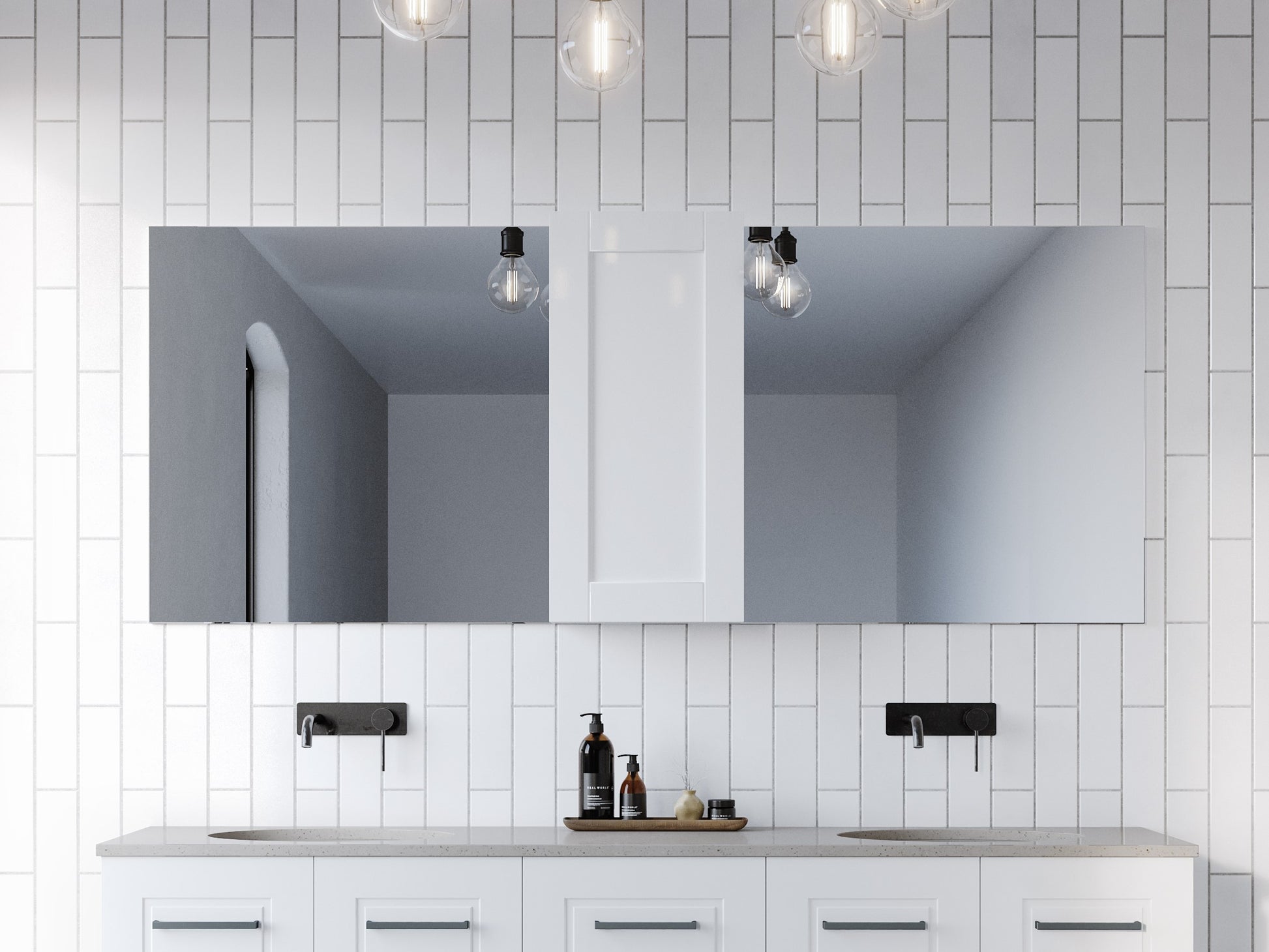 Improve the look of your shaker style vanity with a Victoria shaver. Offered in various sizes and designs, this shaver perfectly complements our routed front profiles. The interior boasts a timeless white finish and features two adjustable melamine shelves in each section.