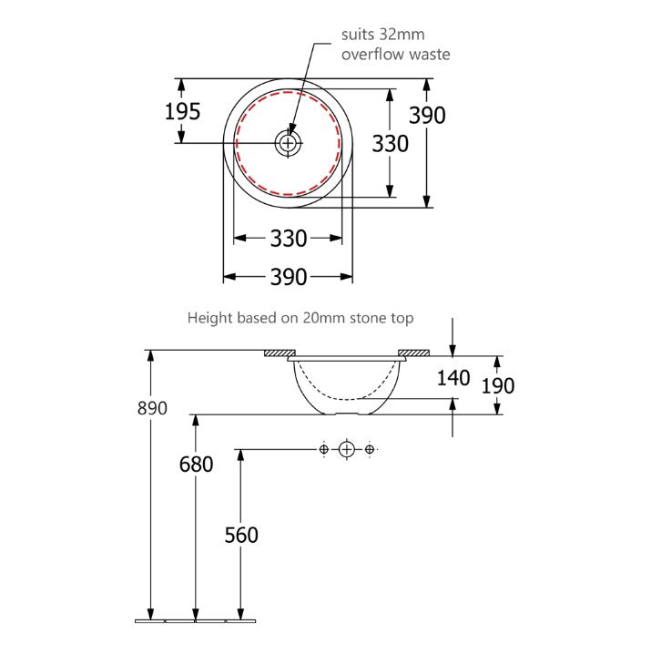 Loop Slim 330 Round Undercounter Basin No Taphole Pure Black