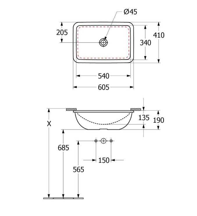 Villeroy & Boch Loop Slim 540 Undercounter Basin Stone White