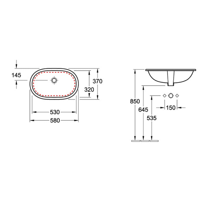 Villeroy & Boch O.novo 530 Undercounter Basin Alpine White