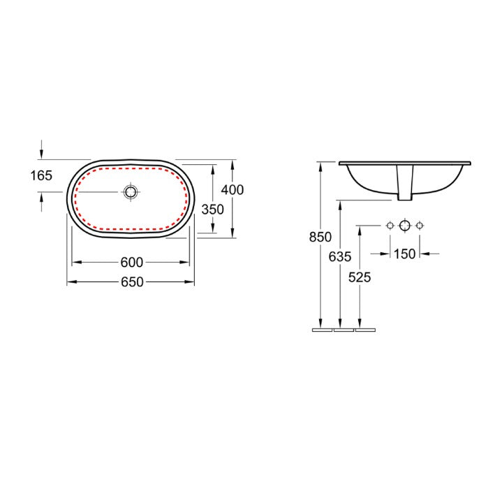 Villeroy & Boch O.novo 600 Undercounter Basin Alpine White