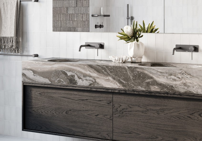 Vivid Slimline SwitchMix Wall Basin/Bath Mixer Set 180mm Trim Kit Only Brushed Carbon- Lead Free