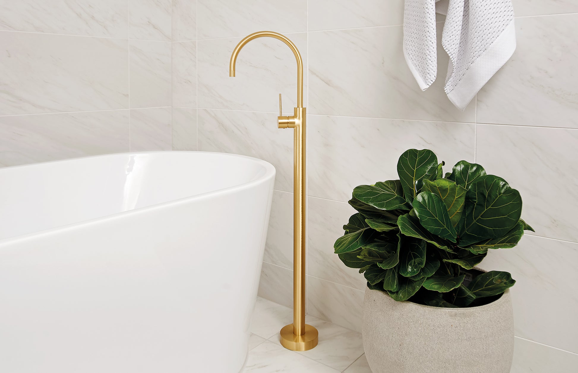 Vivid Slimline Floor Mounted Bath Mixer Brushed Gold
