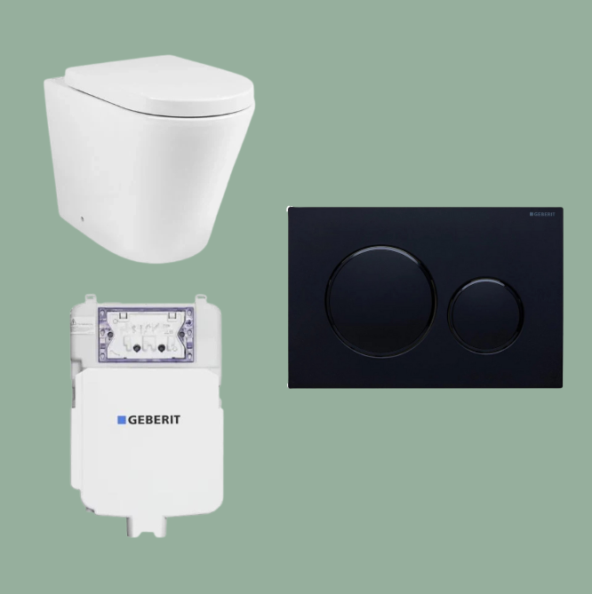 Mimi T3 Rimless Wall Faced Pan, Geberit Cistern & Button Package BLACK
