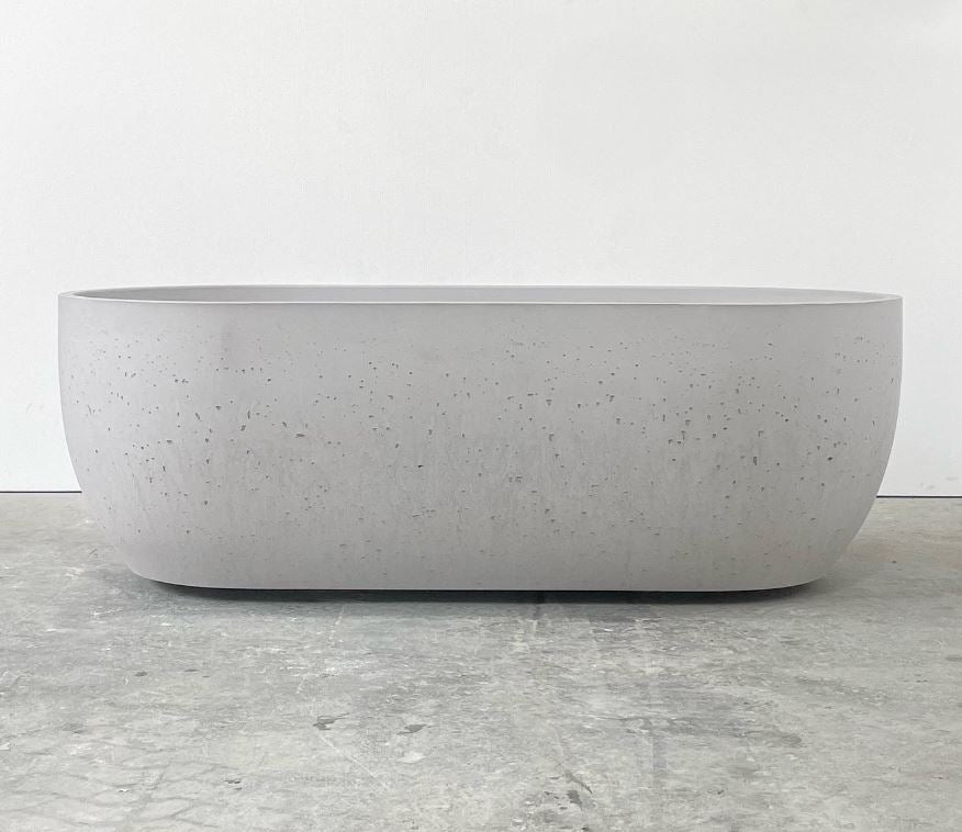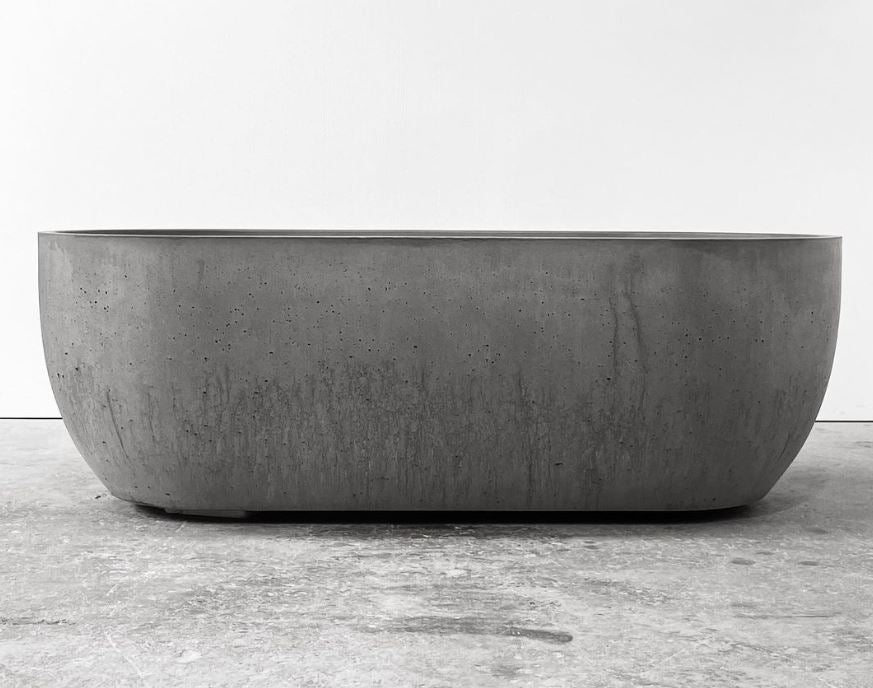 - Modern and a little bit playful this clean, round design will give your bathroom a softness albeit modern edge. The solid concrete bath features a matte finish, offering the raw natural characteristics that will turn your bathroom into a true sanctuary.