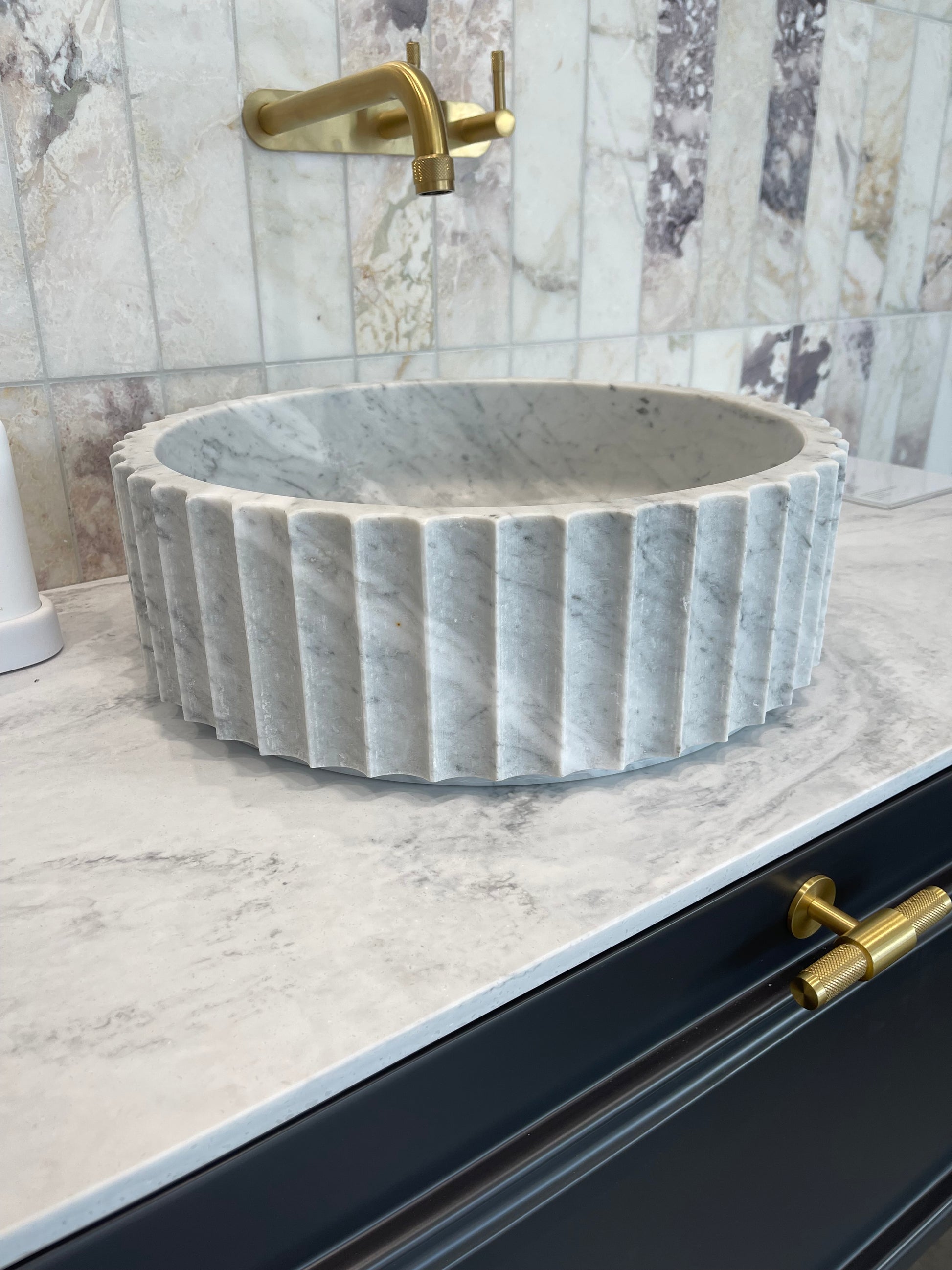 NOTE: Every single piece is different, being marble every piece is custom & bespoke the showroom displays & website images are indication only, every chunk of marble that they are carved from are different & we don’t know what the piece will look like until it is polished this is the beauty of working with a natural material.